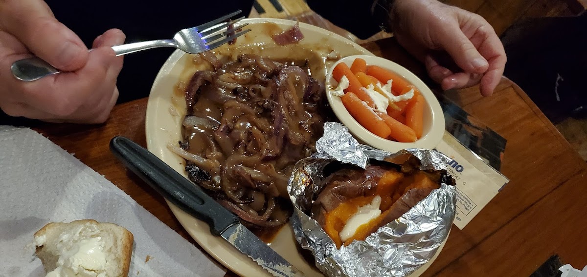 It has a fun atmosphere and amazing dinner rolls. They are big, they have a great crust, they have a wonderful mouth feel, and they are delicious all by themselves and even better with butter. All of the food was good, and we had a fun time there.