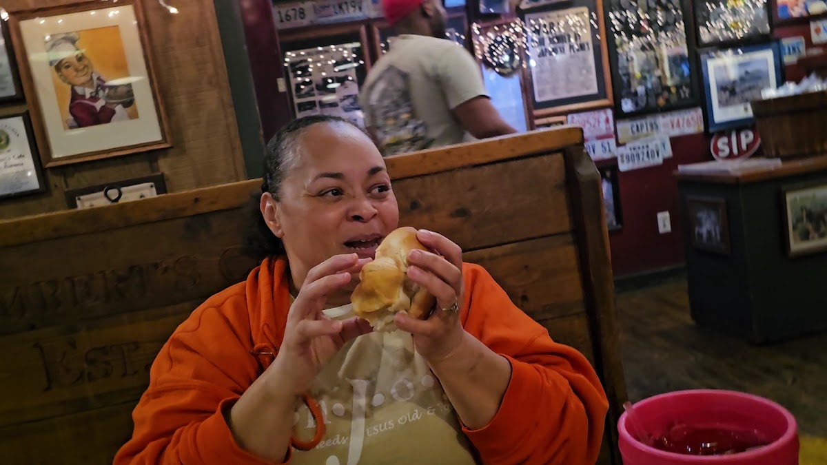Great but touristy. Homestyle meals. Huge and comfort food. They are known for the piping hot rolls but these rolls are delivered by a "throw" to you. Some are short throws. Some are deep bombs Huge portions food and side dishes. Then some shared sides like fried okra. Check out some Videos online