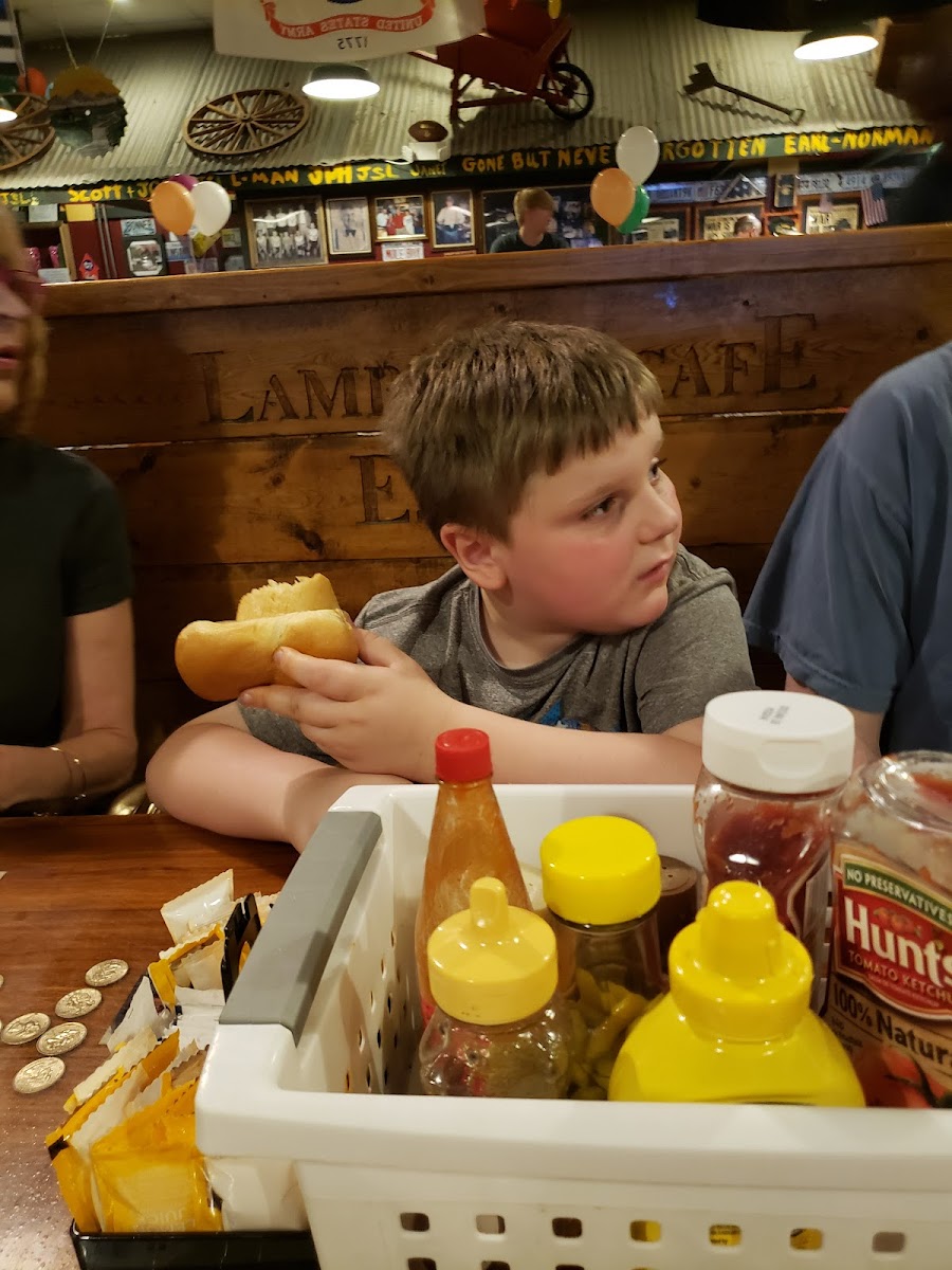 Lambert's Cafe Review We took our two girls to Lambert's Cafe for dinner, and it was a fantastic experience from start to finish! The ambiance was super cool and the kids had a lot to look at. Despite the place being packed, we were greeted with friendly smiles and seated immediately. Our server was amazing--super attentive and patient, especially with our kids. I ordered the broiled chicken breast, and my wife had the catfish. Both dishes were cooked perfectly and tasted absolutely delicious. The pass-arounds were a great bonus, and we especially loved the fried okra and black-eyed peas. Of course, the famous "throwed rolls" lived up to the hype--what a fun and unique experience! If you haven't been to Lambert's Cafe yet, you should definitely give it a shot. We'll be coming back for sure!