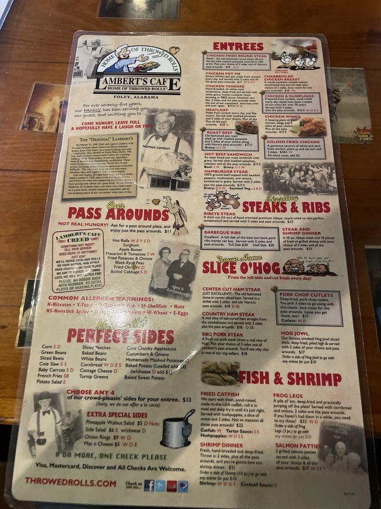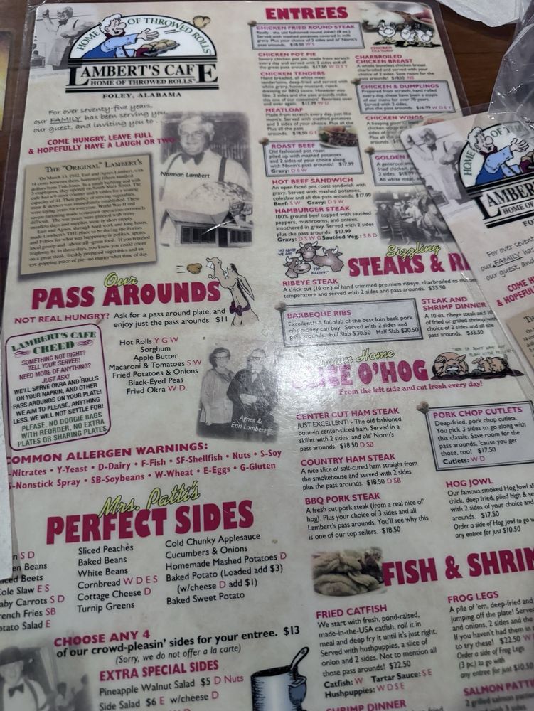 Lambert's Cafe is a lively chicken shop in Foley, AL known for its massive portions and entertaining atmosphere. Customers rave about the rolls being thrown at them and the delicious black eyed peas. The menu offers a variety of options, from BBQ Pork Steak to chicken fried steak, all served with generous sides like macaroni and tomatoes. The pass arounds keep coming, ensuring you won't leave hungry. The friendly service and southern decor add to the overall experience. Make sure to arrive early or be prepared to wait for a table, but the wait is worth it for the hearty and flavorful meals. Lambert's Cafe is a must-visit spot for those looking for a fun dining experience with great food at affordable prices.